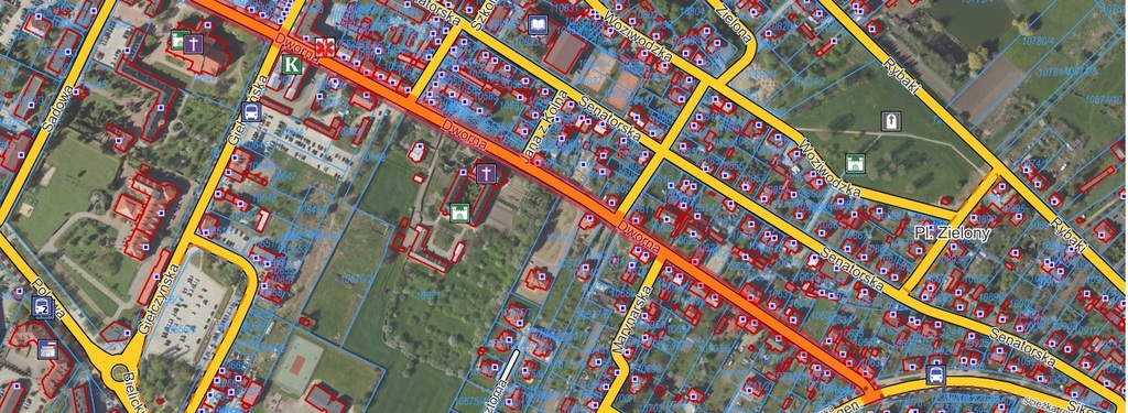 - kierunek kalenicy równoległy do ulic z których działki mają dostęp