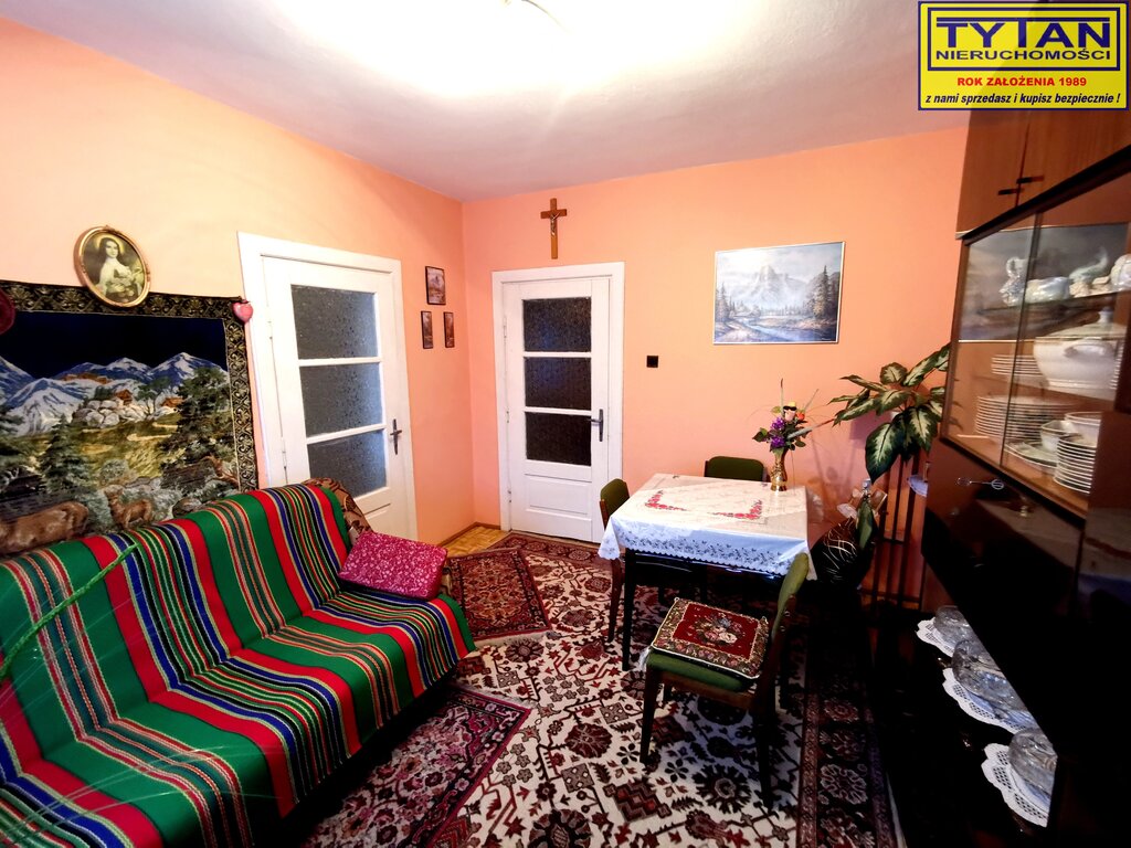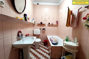 Budynek mieszkalny jednorodzinny o dwóch kondygnacjach nadziemnych (strych do ewentualnej adaptacji), w całości podpiwniczony (część podpiwniczenia aktualnie wynajmowana pod zakład fryzjerski), wybudowany w technologii tradycyjnej (pustak - przerwa - 1/2 pustaka), ogrzewany piecem na ekogroszek.
