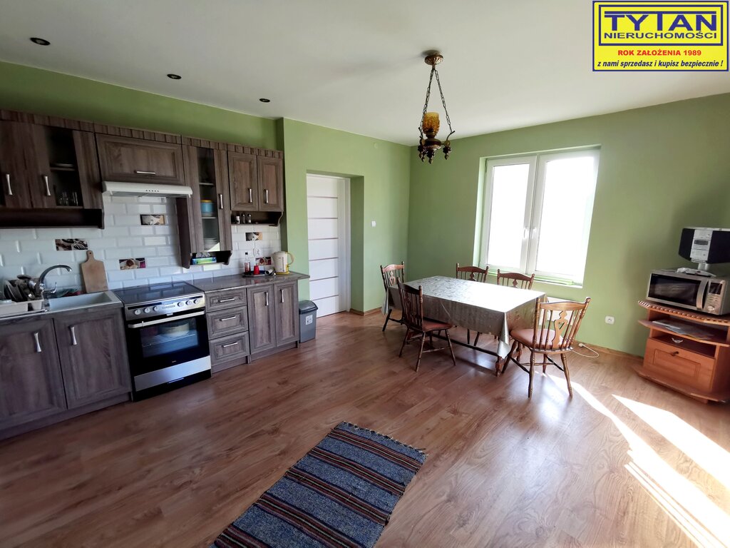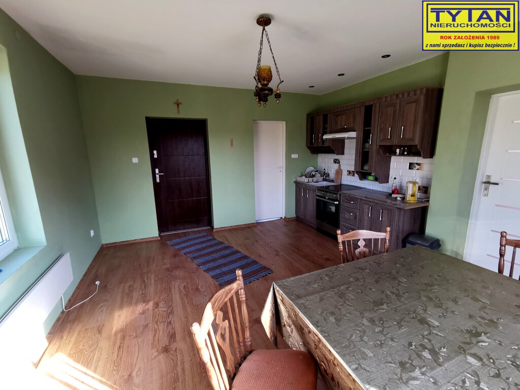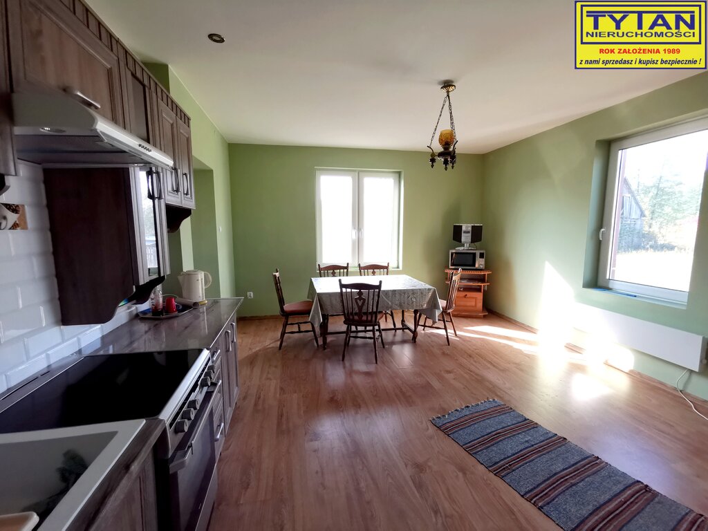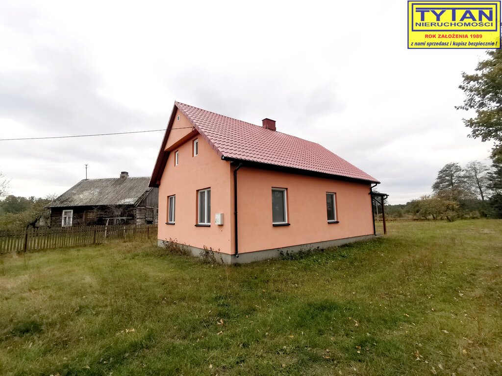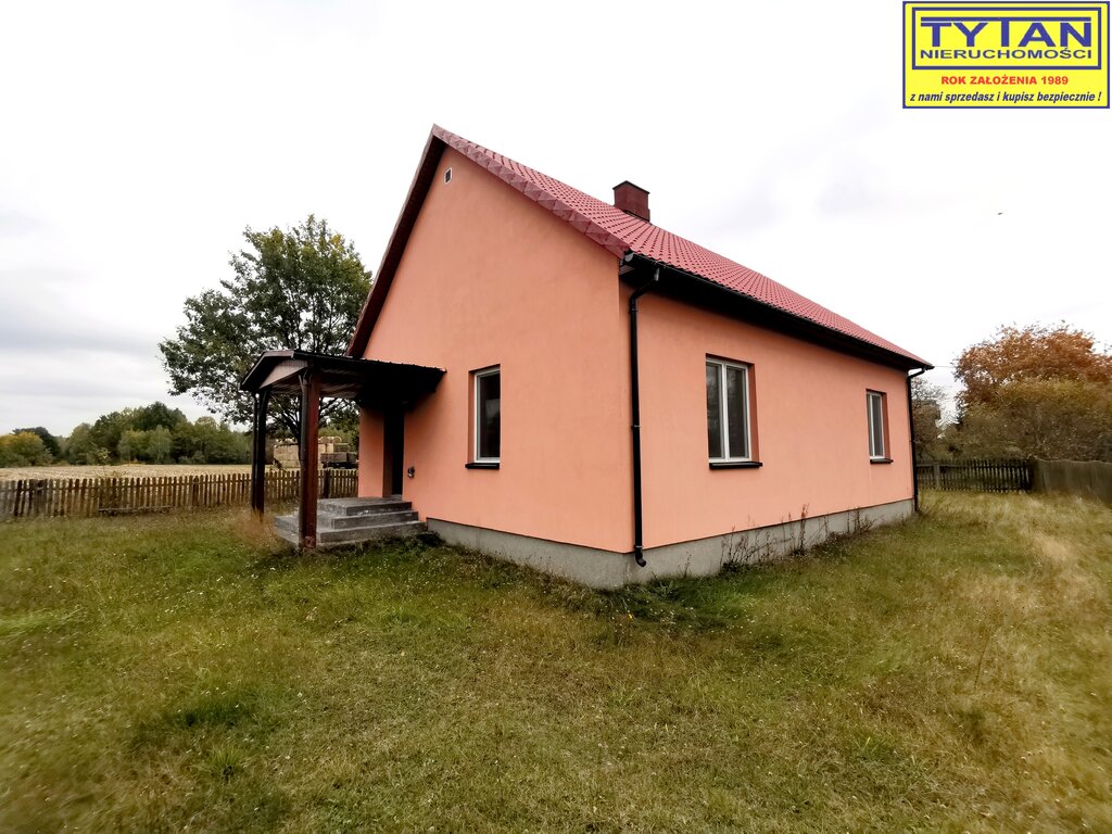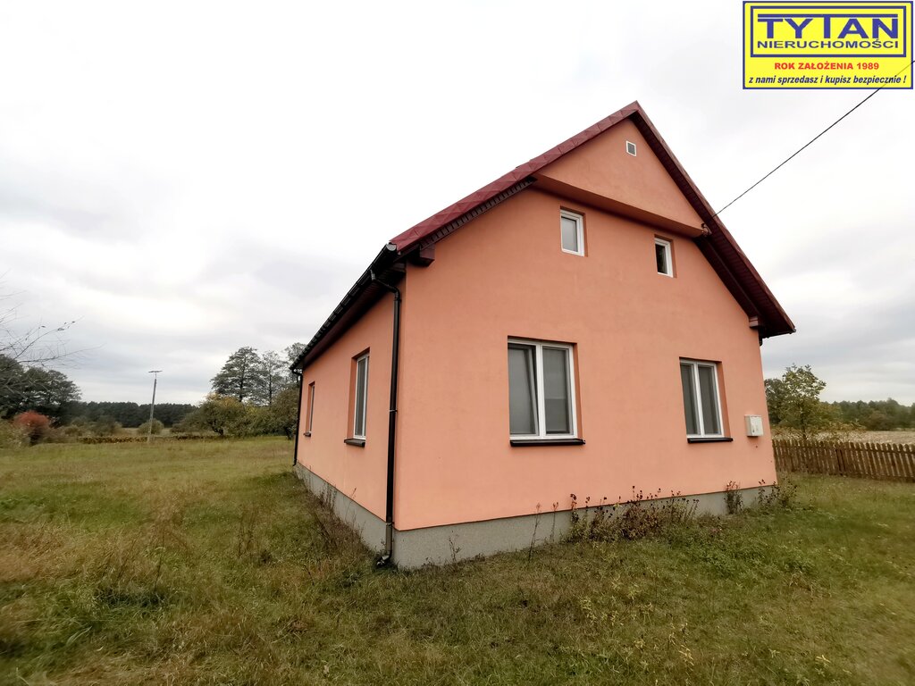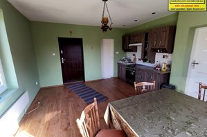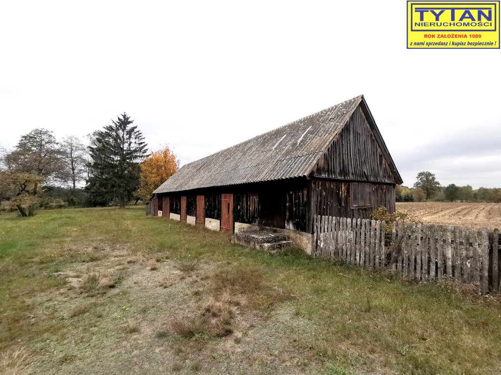 - budynek mieszkalny o pow. zabudowy 94m2, parterowy z 1950 roku, budulec - drewno, kryty blachą. Na parterze budynku znajduje się kuchnia, dwa pokoje, łazienka oraz
