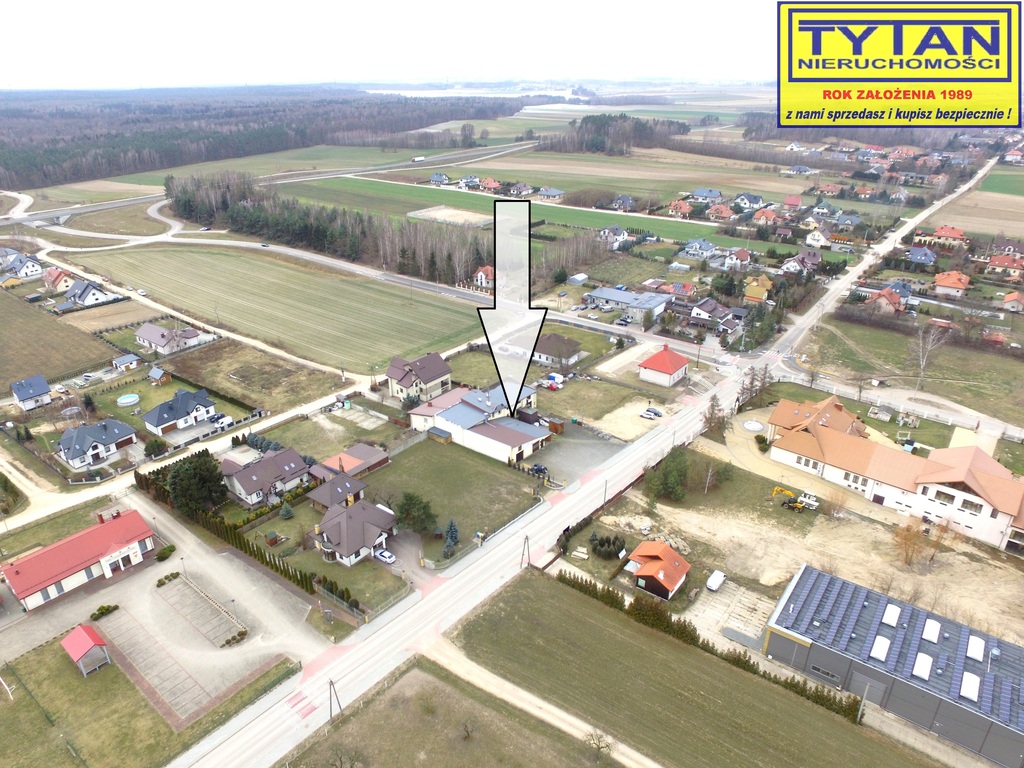 Budynek wolnostojący, murowany, częściowo podpiwniczony (kotłownia i skład opału ok. 45m2) z dachem jednospadowym, pokryty blachą trapezową, sprzedawany z pełnym wyposażeniem i maszynami przeznaczonymi do produkcji domów z drewna.