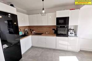 Ściany w pokojach pokryte gładzią szpachlową, wymalowane, na podłogach w pokojach wysokiej jakości panele, w części kuchennej, łazience z WC oraz przedpokoju - terakota, okna PCV trzyszybowe. Kuchnia wyposażona w sprzęty piekarnik, płyta elektryczna, okap, lodówka, zlewozmywak, zmywarka.