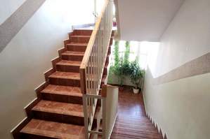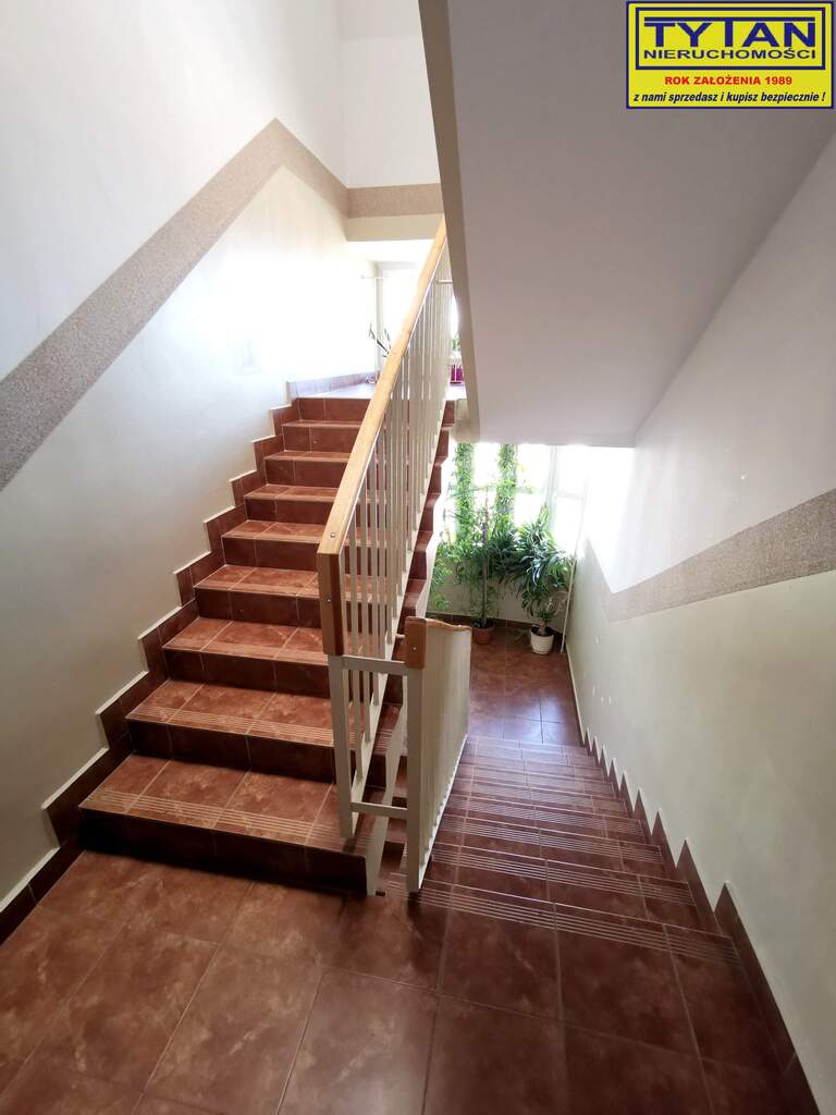 Klatka schodowa czysta, zadbana, obok bloku parking dla mieszkańców.