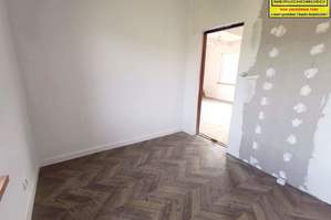 Na podłogach w salonie, części kuchennej, pokojach oraz w przedpokoju wysokiej jakości panele, w łazienkach - terakota, ściany pokryte gładzią szpachlową, wymalowane, w łazience - na ścianach glazura.