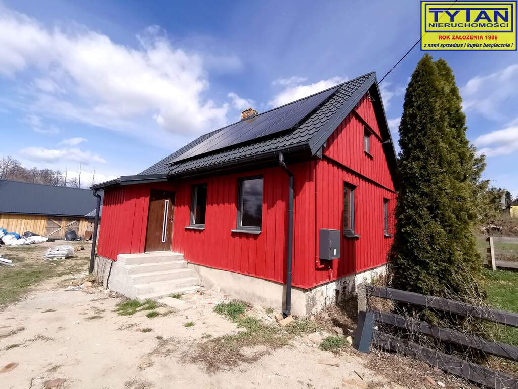 Budynek w 2024 roku przeszedł kapitalny remont, zostały wymienione wszystkie instalacje, zamontowano z instalację fotowoltaiczną o mocy 3,75kW. Dom wykonany z bala drewnianego wykończonego deską (ocieplenie wełna), dach - blachodachówka (ocieplenie wełna), okna plastikowe w kolorze antracyt, drzwi wejściowe antywłamaniowe w kolorze złoty dąb.