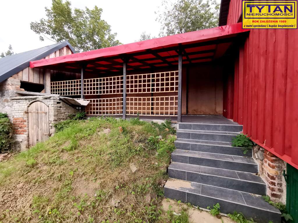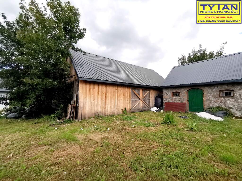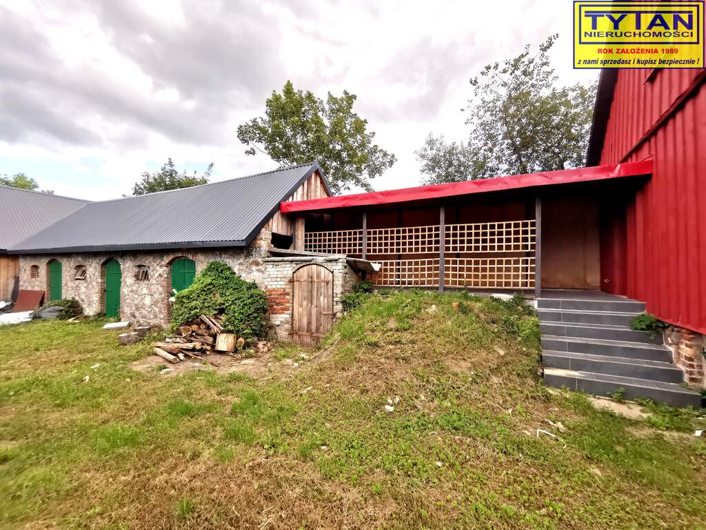 - drewniany budynek gospodarczy o powierzchni 87m2 (dodatkowo możliwość zaadaptowania poddasza), dach - blachodachówka,
