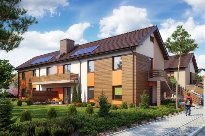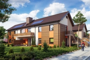 Liliów DM-6563 to nowoczesny budynek wielorodzinny składający się się z dwóch zbliźniaczonych budynków, w których są po dwa mieszkania, piętrowy, niepodpiwniczony, bez garażu. Projekt charakteryzuje się nowoczesną, minimalistyczną architekturą, którą można podkreślić stosując nowoczesne materiały elewacyjne.