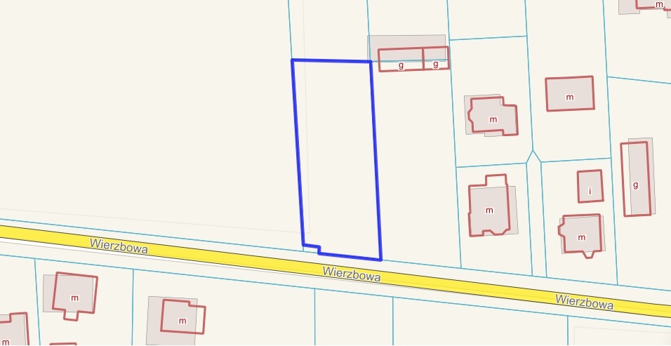 - linia zabudowy - w odległości 12m od linii rozgraniczającej grogi gminnej ul. Wierzbowej