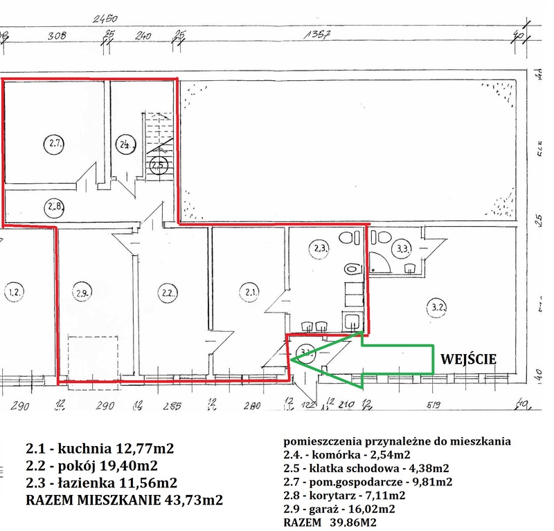B) POMIESZCZENIA PRZYNALEŻNE (CZĘŚĆ NIEMIESZKALNA) O POW. 39,86M2