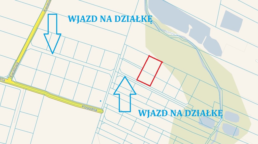 Cicha, spokojna okolica. Idealne miejsce do zamieszkania. Dojazd do działki stanowi droga o nawierzchni polnej.